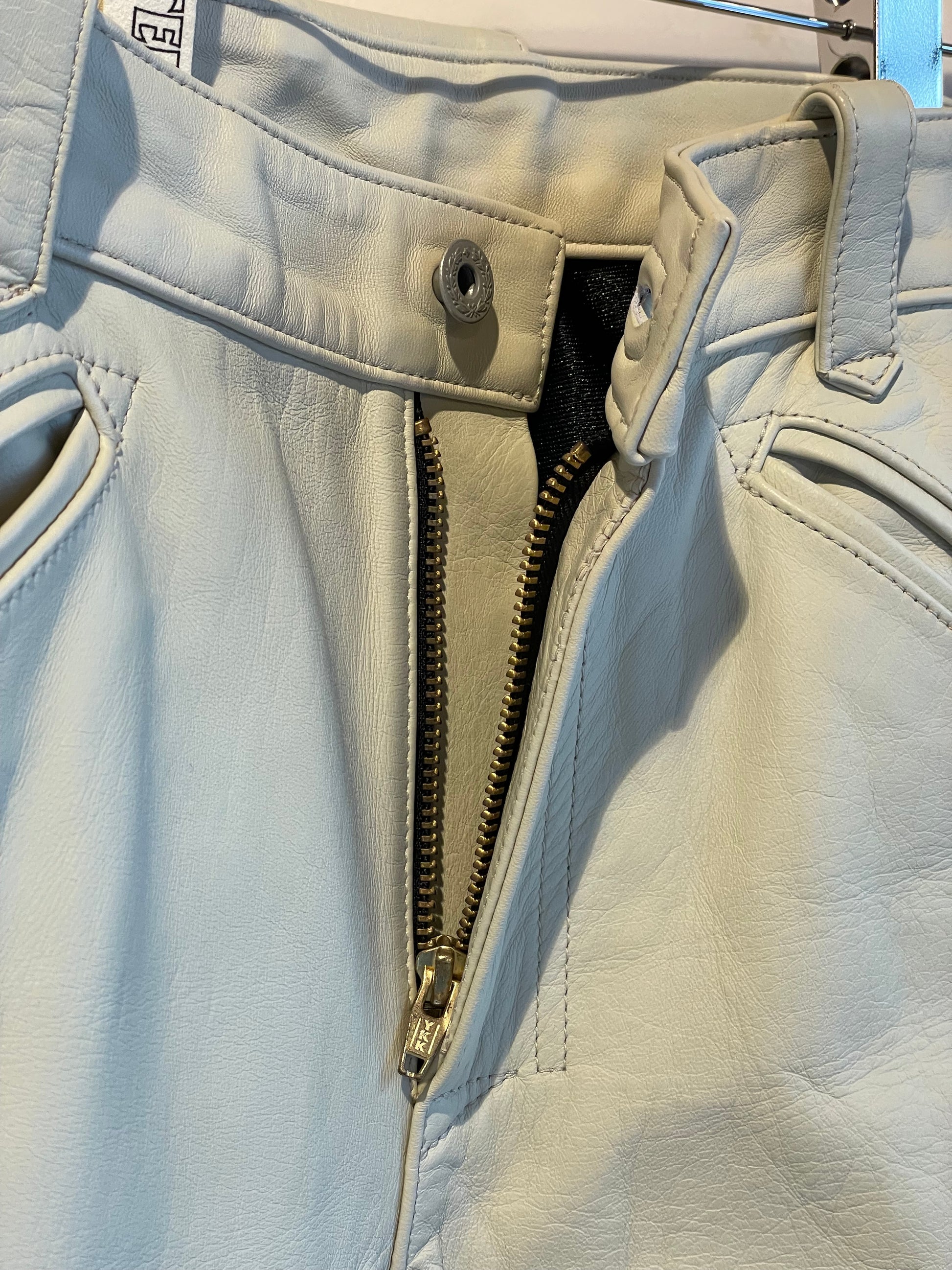 レザーパンツ3型で構成される、RERのシリーズ中、最も厚いホースレザー(1.3mm厚)を用いて、作られるMustang。